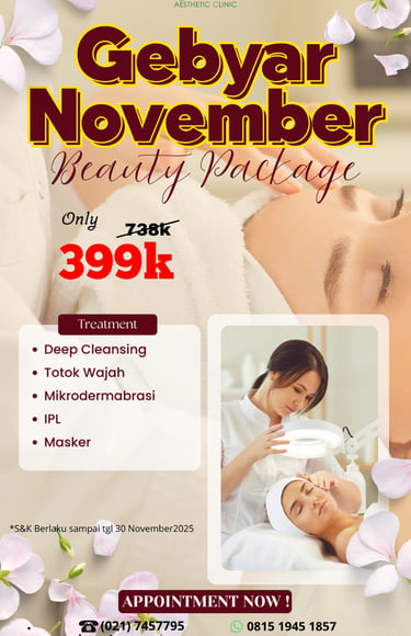 🔒 Standar Keamanan & Teknologi Teruji : Prioritas utama kami adalah keamanan Anda. Kami hanya menggunakan teknologi modern yang telah teruji klinis dan produk medical-grade yang terdaftar resmi (BPOM). Klinik kami menerapkan standar higienitas dan sterilisasi medis yang ketat.